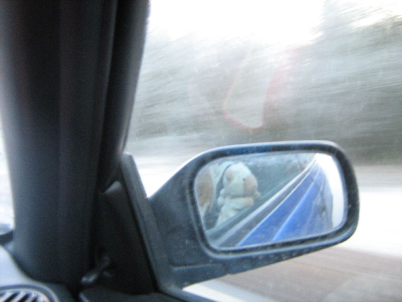 Ein Beispiel höchst genialer Fotokunst. Das bin ich, im rechten Außenspiegel des wunderschönen