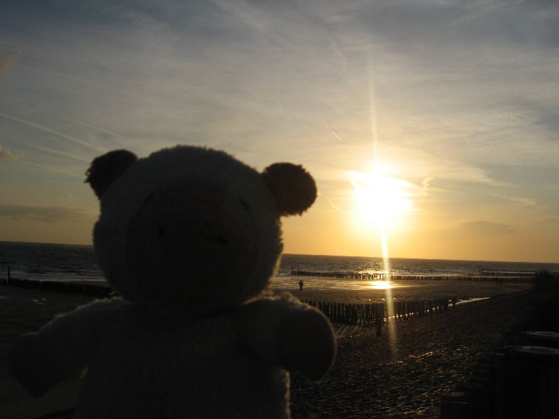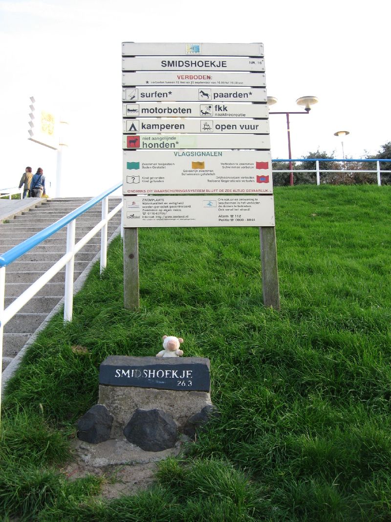 Seite 1 - 2 - 3 - 4 ![]() ![]() ![]() ![]() ![]() 1: Schwein mit Karte, auf der Fahrt nach Zoutelande, das im schönen Zeeland liegt, welches wiederum in den Niederlanden gelegen ist. 2: Pech hatten wir zum Glück nicht, aber Schwein findet, so Nummern kann man sich ruhig mal aufschreiben. Oder fotografieren. 3: Noch schnell ein Blick auf die Karte, bevor es weitergeht. Freundlicherweise hat auch jemand markiert, wo wir gerade sind - nämlich auf der Autobahn zwischen s'Hertogenbosch und Zeeland. So ganz grob. 4 und 5: Wir waren uns uneinig darüber, was man hinter den Bäumen finden würde, die an der Straße entlang standen. Schwein war sicher, es müsse das Meer sein. Er hatte fast recht. Es war eine Art Binnenmeer. Einige Meter weiter konnte man es dann auch tatsächlich sehen. ![]() ![]() ![]() ![]() ![]() 6: Unser Reisevehikel, zusammen mit der Reisevehikelfahrerin und einem von Schweins früheren Mitbewohnern. 7, 8, 9: Landschaft! Aussicht! Auch hier wieder ein kleines Stück Meer, kurz vor der Brücke, die von der oberen zur mittleren Zeeland-Insel führt. 10: Irgendjemand hat genau dort, an dieser Stelle, aus irgendeinem Grund, sein Fahrrad abgelegt. Niemand weiß, warum. Schwein würde im Laufe des Urlaubs aber noch mehr Erfahrung mit fahruntüchtigen Fahrrädern sammeln. ![]() ![]() ![]() ![]() ![]() 11: Ein Blick vom Strand auf den Deich. 12: Der erste richtige Strand! Und sogar die Sonne schien. Und der blaue Himmel erst. Schade nur, dass es bis zum Meer noch ein weiter Weg ist. Schwein nutzt seinen mitleidserregenden Blick und wird getragen. 13: Endlich Meer! Ob es wohl kalt ist? Schwein ist nicht sicher, ob er das wirklich herausfinden möchte. Aber die Wellen sehen so schön aus... 14: Naja, zumindest ein bisschen näher ans Wasser kann man ja mal gehen. Aber irgendwann ist auch mal gut. 15: Schwein weigerte sich standhaft, sich auf diese Decke zu legen. Zurecht, wie zwei von drei seiner Begleiter fanden. Der Wind konnte sich das Elend auch nicht mit ansehen und versuchte, so viel Sand wie möglich über das Unglück zu wehen. ![]() ![]() ![]() ![]() ![]() 16: Unser Haus, oder besser gesagt, der Hof, mit einem quadratischen Ding drin, dessen Sinn sich nicht nur Schwein nicht erschloss. Leider war das Wetter zu schlecht, um irgendwann mal wirklich draußen zu essen. 17 und 18: Die Mühle um die Ecke von unserem Haus. 19: Der erste Abend. Es gab Nudeln, wahlweise mit Tomatensauce oder Pesto. Und Salat. 20: Die Statue stellt einen Walcherse Boer, also einen Bauern dar, aus der Gegend rund um Zeeland. Er steht an der Düne vor dem Zouteländischen Strand. ![]() ![]() ![]() ![]() ![]() ![]() ![]() 21: Daneben: Dieses Schild, dieser Stein und Schwein. Smidshoekje ist der Name des Strandes. Wie man sieht, kann man hier reiten, campen und windsurfen, und letzteres sieht auch verdammt spaßig aus. 22: Auf der Düne. Der Blick trifft vor allem auf Cafés und Touri-Läden. 23: Das ist eine Flagge, und dem Löwen darauf nach zu urteilen, gehört sie wohl irgendwie zu Zeeland. Leider konnten weder Schwein noch Google herausfinden, wofür genau das Wappen steht. 24 bis 27: Strand! Sand! Sonnenuntergang! ![]() ![]() ![]() ![]() ![]() 28: Schweins Reisebegleiter, in der Schattenansicht. 29 und 30: Schwein versucht, sich auf einer Düne fotografieren zu lassen. Leider hat sein Gleichgewichtssinn unter der langen Fahrt etwas gelitten. Irgendwann gelang es dann aber doch. 31: In Zoutelande fahren die Schiffe sehr nah am Strand vorbei. Im Sinne von SEHR nah. Man rechnet fast damit, dass das Schiff gleich anlegt. 32: Noch mehr Strand. Es war schon recht spät an dem Tag, darum sieht man kaum noch Leute, aber im Sommer, wenn es wirklich mal warm ist, ist hier sicher viel los. ![]() ![]() ![]() ![]() ![]() 33: Schwein vor der zoutelandischen Landschaft. 34: Ein Relikt aus alten Zeiten. Diese Gerätschaften hatten im zweiten Weltkrieg den Zweck, Schiffen das Anlegen zu erschweren. Jetzt ist es auf einer Düne gestrandet, und Schwein auf ihm. 35: Ein alter Bunker. Von den holländischen Nachbarn erbaut. 26: Majestätisch stand er da, der Löwe, und für das Bild mit Schwein hat er nochmal besonders grimmig geschaut. 37: Am Ende des Tages trafen wir noch ihn hier. Er war etwas schreckhaft, freute sich aber, Schwein kennen zu lernen, auch wenn der es vorzug, lieber nicht zu nah an ein soooo großes Tier heranzutreten. (Dabei ist er sonst so furchtlos!) ![]() ![]() ![]() ![]() ![]() 38: Am nächsten Tag ging es nach Middelburg. Durch Middelburg fließt ein kleiner Fluss, an dessen Brücke sich Schwein direkt mal fotografieren ließ. Regnen tat es leider auch. 39: Aber davon ließen wir uns natürlich nicht stören. Und mit Hilfe seines neuen Bekannten fand Schwein auch bald den Sommer wieder. 40: Hier gab es Öl und Essig und alle möglichen äußerst gut schmeckenden Spezialitäten, leckere Dips zum Beispiel. 41: An dieser Stelle musste Schwein feststellen, dass es nicht reicht, sich auf ein Fahrrad zu stellen, um damit zu fahren. Aber zumindest die Aussicht war schon mal ganz schnieke. 42: Im C&A. Für die, die es nicht von alleine erkennen, gibt es sogar Schilder, die sagen, was das Treppenhaus und was der Aufzug ist. ![]() ![]() ![]() ![]() ![]() 43: Im Hintergrund: Das Stadhuis (Rathaus) von Middelburg. Der Bau daran begann im 15. Jahrhundert. Wer es gerne virtuell besichtigen möchte, ist hier richtig. 44: Im H&M. Endlich haben wir auch mal etwas für Schwein gefunden! Yo! 45: Schwein, Hurrabärchi und Teile-gern-Bärchi. Letztere schaut, als wüsste sie schon, wie sie uns Schwein abluchsen kann. Hurrabärchi hat aber auch ein Auge auf ihn geworfen. 46 und 47: Eine so nette Dame, ganz allein, mitten auf der Fußgängerzone? Das kann Schwein nicht zulassen. ![]() ![]() ![]() ![]() 47: Ein niederländisches Polizeiauto. Das übrigens unverschlossen war und an dessen Armatur ein Navi befestigt war. Die müssen ein gesundes Menschenvertrauen haben. 48 und 49: Neben dem Langen Jan steht diese Statu